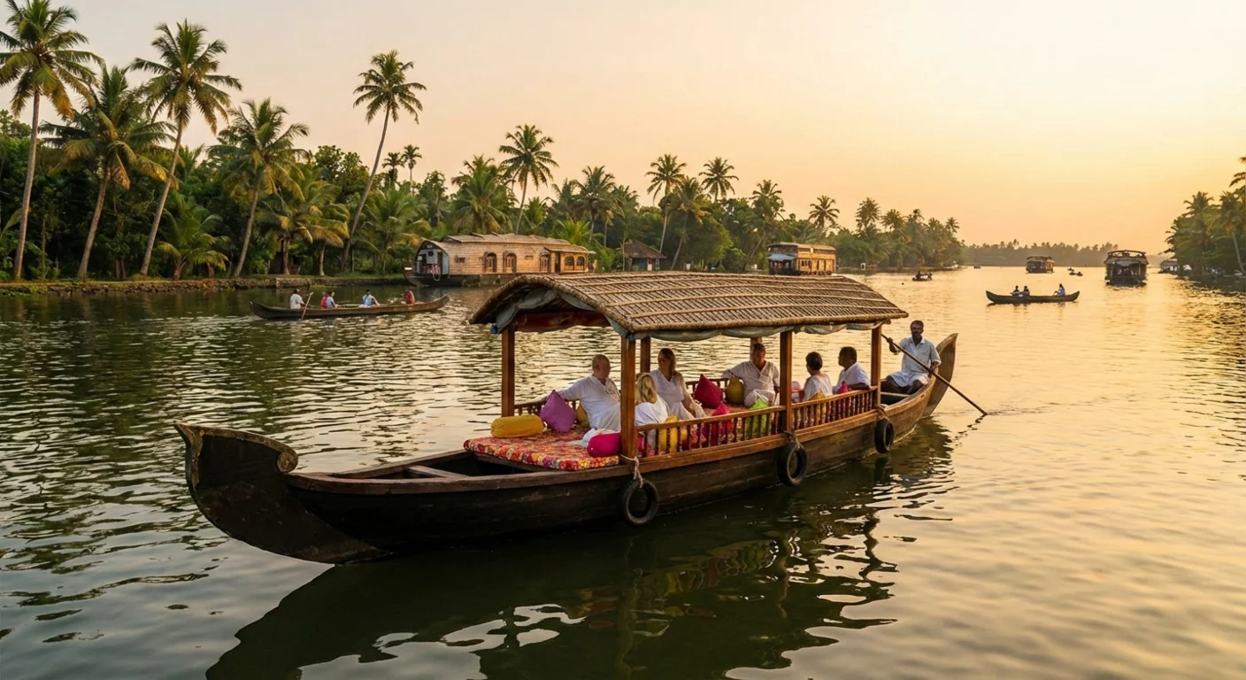 Perfect for: Couples and photography enthusiasts wanting to capture the mesmerizing sunset colors reflecting on the tranquil backwaters.